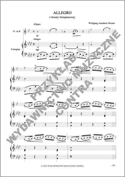 Łatwy Mozart - nuty na trąbkę z fortepianem