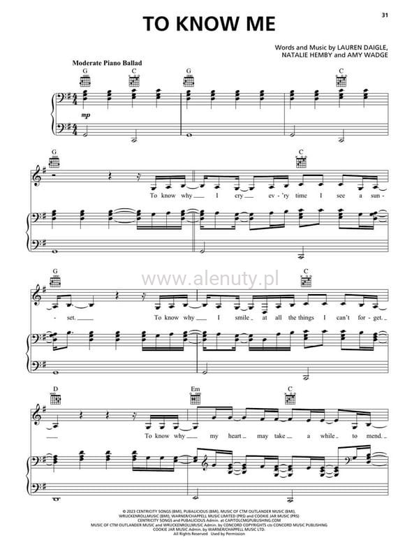 Lauren Daigle (PVG) - melodia, nuty na fortepian, akordy gitarowe i słowa