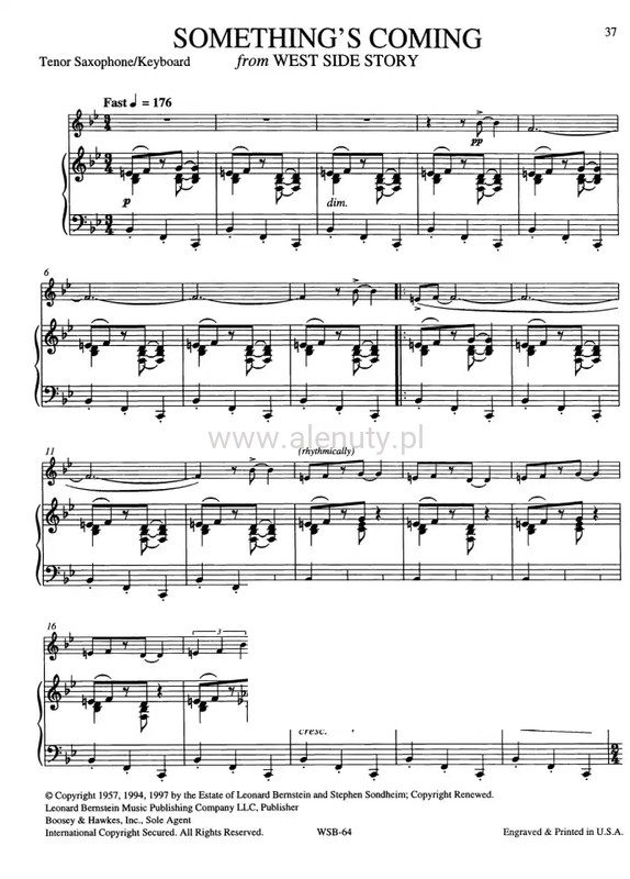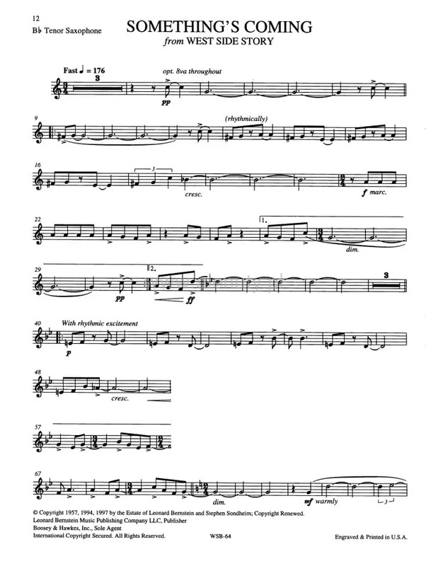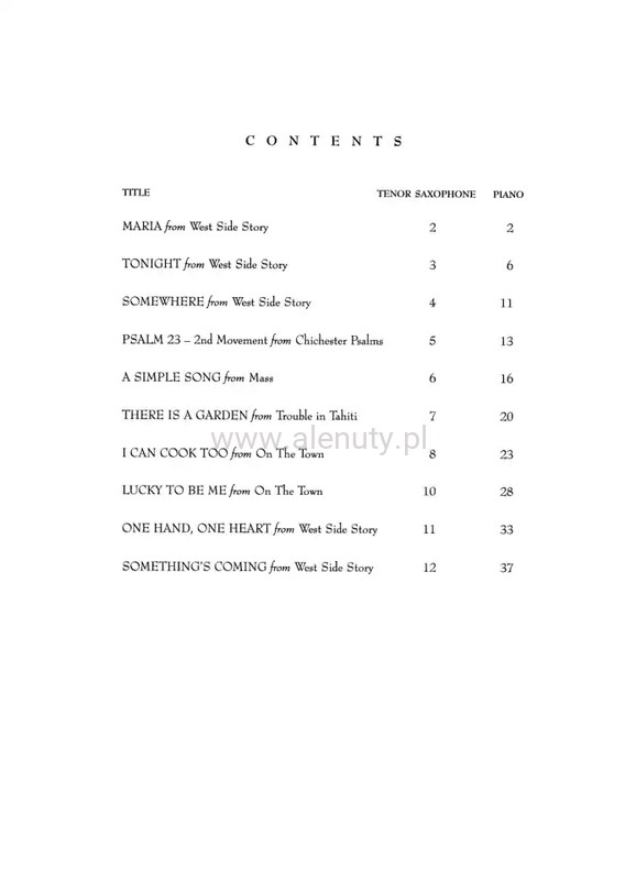 Now you can play your favourite tunes from Bernstein's shows, musicals and operettas! These collections feature all the most memorable themes idiomatically arranged for intermediate level woodwind and brass players. "I am delighted with this as it crosses the boundary of ‘classical’ to ‘light’ music very successfully ... useful for players of grade 3+ to get a feeling for light music and Bernstein’s genius for tune writing ... I would buy it. Beautifully printed too." /Review 1998/. Contents: Maria (West Side Story) · Tonight (West Side Story) · Somewhere (West Side Story) · Psalm 23 (Chichester Psalms) · A Simple Song (Mass) · There is a Garden (Trouble in Tahiti) · Lucky to be Me (On the Town) · I Can Cook Too (On the Town) · Oh, Happy We (Candide) · One Hand, One Heart (West Side Story) · Something's Coming (West Side Story).