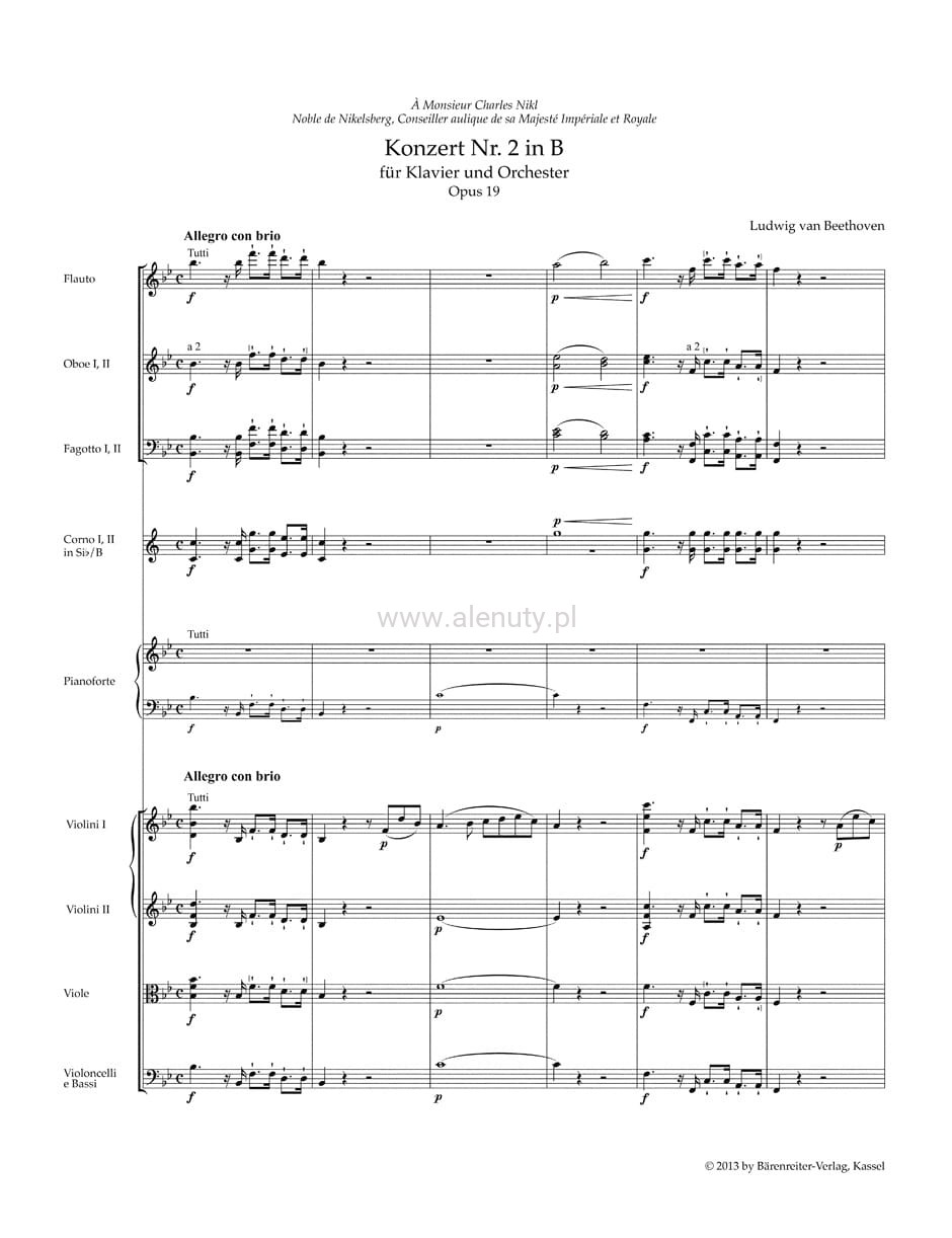 Ludwig van Beethoven: Concerto for Pianoforte and Orchestra no. 2 B-flat major op. 19 - koncert fortepianowy nr 2 B-dur - partytura studyjna