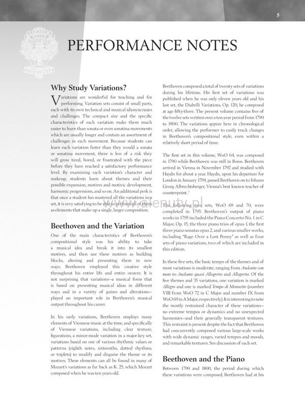 Publikacja zawiera wybrane wariacje Ludwiga van Beethovena na fortepian. Nuty dla początkujących lub średnio-zaawansowanych.