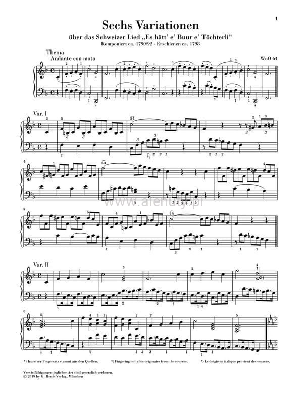 6 Piano Variations on the Swiss Song “Es hätt e’ Buur e’ Töchterli” WoO 64