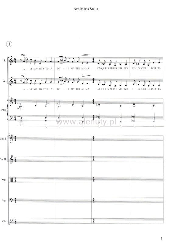 Publikacja zawiera utwór muzyczny "Ave Maris Stella" (łac. Witaj Gwiazdo Morza) opracowany na chór żeński, głos solowy, orkiestrę smyczkową i fortepian. Tekst oparty jest na średniowiecznej antyfonie maryjnej z VIII wieku, będącej tradycyjnym hymnem pochwalnym ku czci Matki Bożej. Kompozycja odwołuje się do symboliki Gwiazdy Morza, utożsamianej z Gwiazdą Polarą, która wskazuje drogę wędrowcom przez swe niezmienne położenie w ciągu nocy. W utworze zastosowano fragmenty monodyczne oraz melodykę quasi gregoriańską, co nawiązuje do ducha średniowiecza. Harmonia modalna oraz zmienność tonacji, z dominującą tonacją G, nadają utworowi charakter wzniosły i pochwalny. Specjalnym elementem, który dodaje wyjątkowego klimatu, jest ocean drum, mający na celu imitację szumu morza i morskich fal. Nuty przeznaczone dla średnio zaawansowanych muzyków.