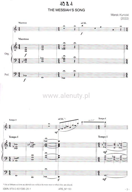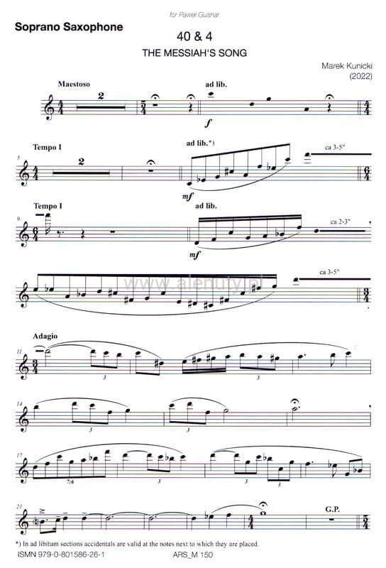 Marek Kunicki: 40&4 The Messiah's Song for soprano saxophone and organ - nuty na saksofon sopranowy i ograny