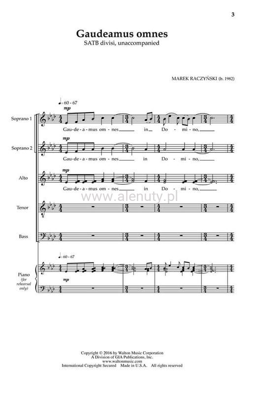 Marek Raczyński: Gaudeamus Omnes - nuty na chór mieszany SSATB z fortepianem