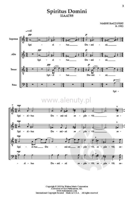 Marek Raczyński: Spiritus Domini - nuty na chór mieszany SSAATBB