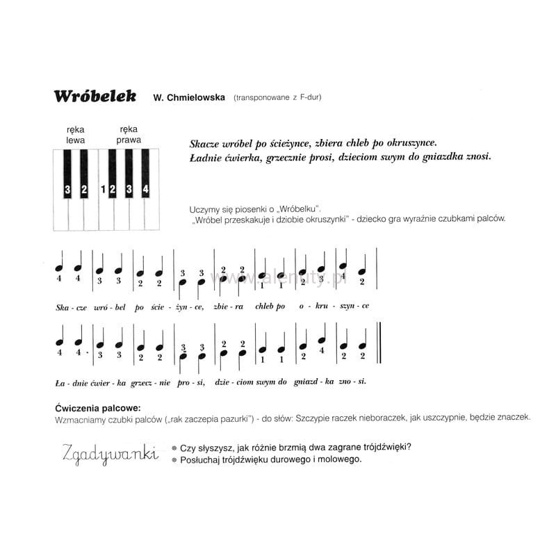 - Gra piosenek na czarnych klawiszach, kolejnymi palcami, na 2 ręce