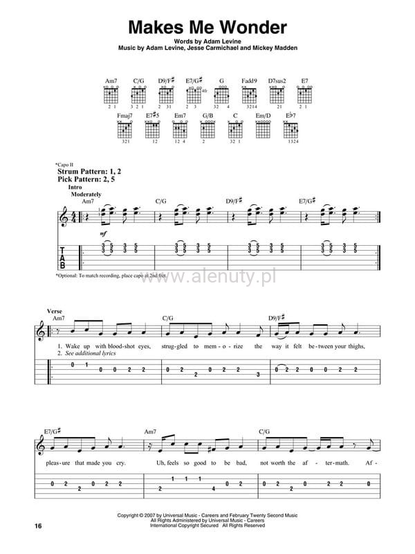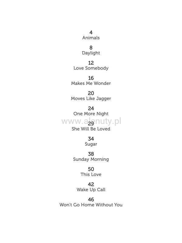 A dozen of the biggest hits by this uber-popular band arranged for easy guitar with notes and tablature. Includes: Animals • Daylight • Love Somebody • Makes Me Wonder • Moves like Jagger • One More Night • She Will Be Loved • Sugar • Sunday Morning • This Love • Wake up Call • Won't Go Home Without You.