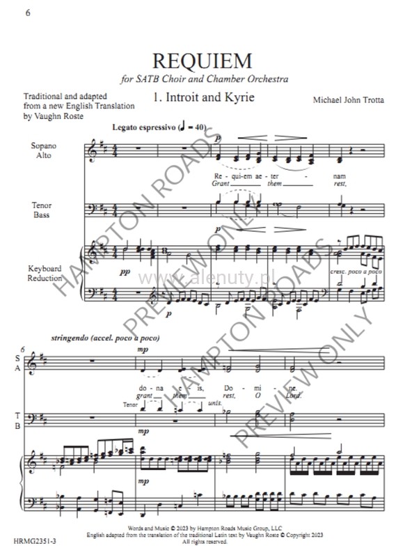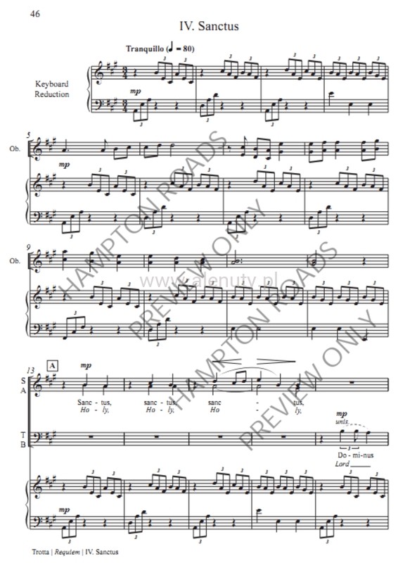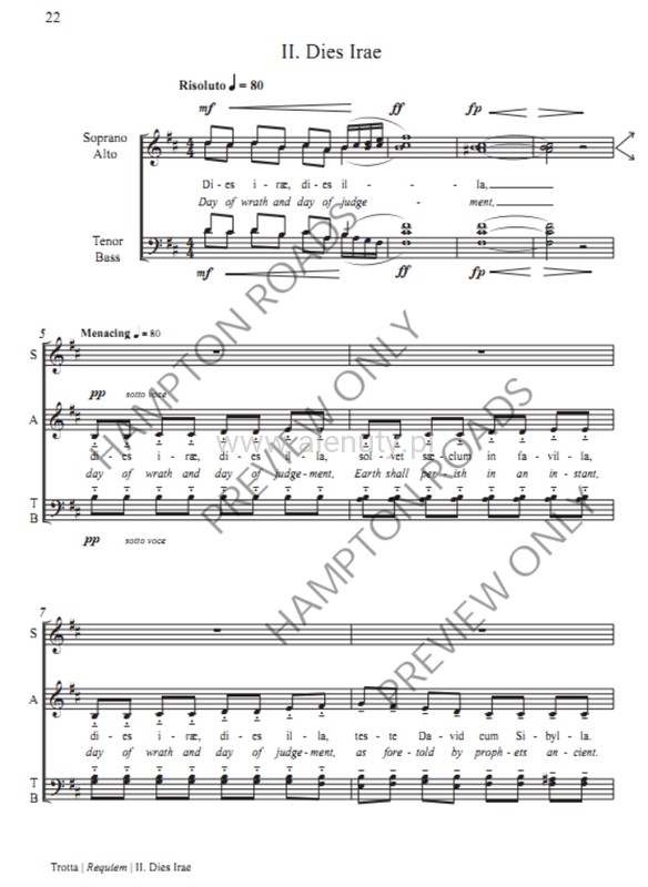 Requiem is a powerfully appealing, tender exploration of love and loss. Grounded in tradition while incorporating a present-day harmonic language, two Gregorian Chant motives are interwoven throughout the lush harmonies and soaring melodies. The level of difficulty is within the reach of many choirs and most orchestral players, making it an attractive choice for church or concert hall. A new translation of the traditional text makes it possible to perform the work entirely in English or entirely in Latin. Available accompaniments for piano, organ only, organ and winds, or chamber orchestra. Whether your choir sings a major work twice a year or is looking to try a multi-movement work for the first time, it is an excellent choice for the worship space or concert hall. The work has a flexible duration (28-40 min.) depending on the inclusions optional solo and a cappella movements. 40 min. – Complete – All movements - 34 min. – Without Solo Movements (5 And 9) - 33 min. – Without Unaccompanied Movements (2 and 7) - 28 min. – Without Unaccompanied or Solo Movements (1,3,4,6,9, 10 only) There are 3 accompaniment options: Piano/Organ only; Organ and Winds (5 players + org.); Chamber Orch. (13-20 players)