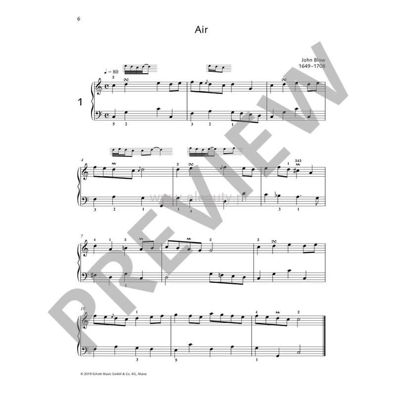 Druga część zawiera utwory z rozszerzonym zakresem dwóch oktaw i sekwencje akordów z trzema lub czterema składnikami, w tym ich przewroty. Inne aspekty nauki obejmują użycie pedału, proste ozdobniki, podstawową polifonię, rozróżnianie melodii i akompaniamentu oraz utwory w tonacjach durowych i molowych. Nuty przeznaczone dla początkujących.