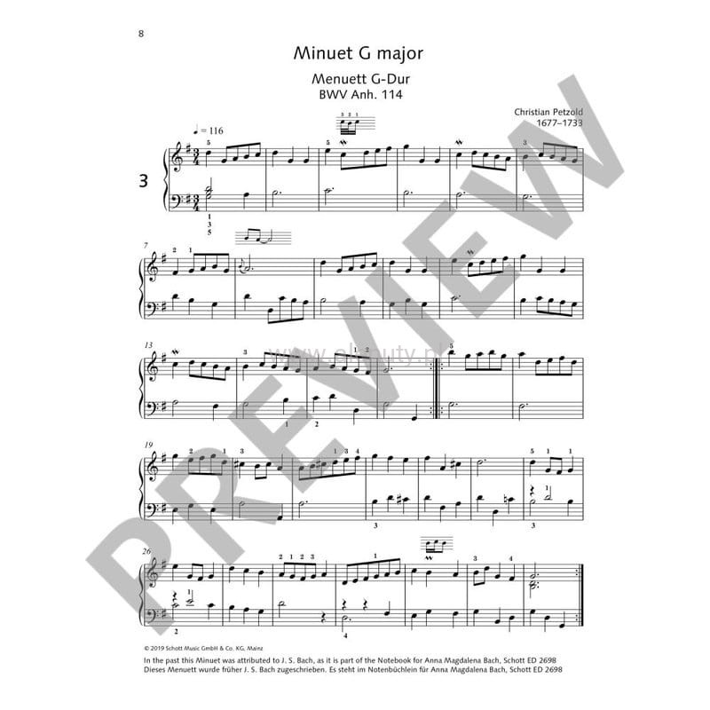 - Christian Petzold (1677–1733): Menuett G-Dur, BWV Anh. 114, Menuett g-Moll, BWV Anh. 115