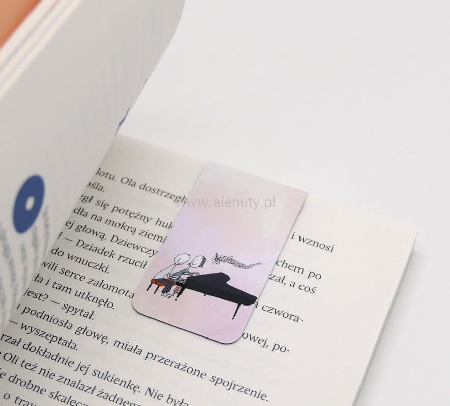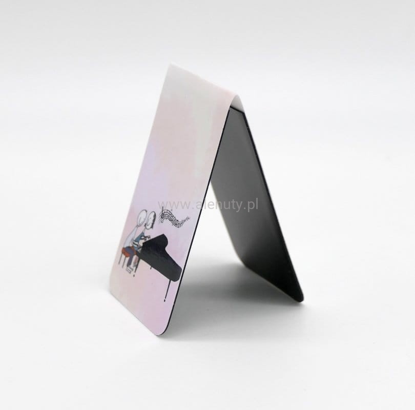 Zakładka magnetyczna z muzycznym motywem pianistów, to nie tylko piękny ale także praktyczny gadżet. Laminowana powierzchnia zapewnia trwałość i odporność na uszkodzenia, a mocny magnes gwarantuje pewne i stabilne przymocowanie do stron książki, bez ryzyka przesuwania się podczas przechowywania. Zakładka ma wymiary 14 cm x 4 cm (7cm x 4 cm po złożeniu), co czyni ją idealną do oznaczania stron w książkach i nutach.