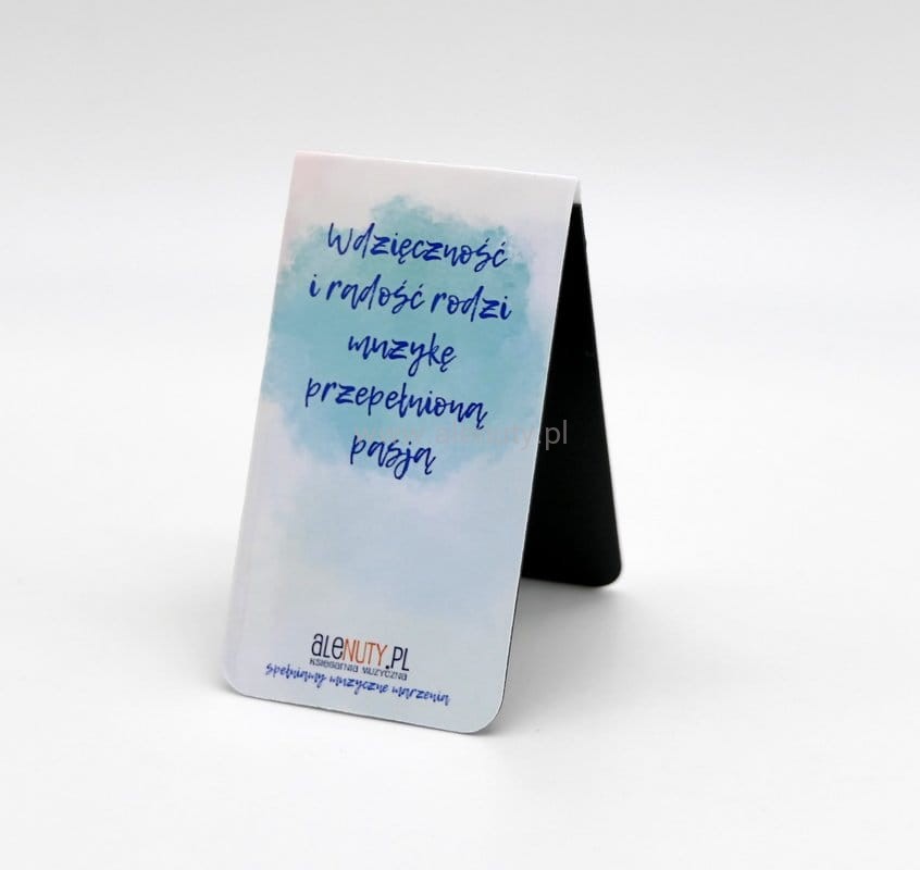 Dzięki jej wygodnemu i praktycznemu designowi, czytanie i nauka muzyki stają się jeszcze bardziej przyjemne i wygodne. Oprócz wizerunku instrumentalistki na drugiej stronie zakładki widnieje piękny muzyczny cytat. Grafika autorstwa znakomitego ilustratora - Andrzeja Tylkowskiego.