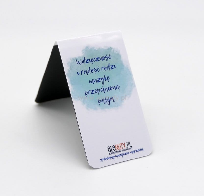 Dzięki jej wygodnemu i praktycznemu designowi, czytanie i nauka muzyki stają się jeszcze bardziej przyjemne i wygodne. Oprócz wizerunku instrumentalisty na drugiej stronie zakładki widnieje piękny muzyczny cytat. Grafika autorstwa znakomitego ilustratora - Andrzeja Tylkowskiego.