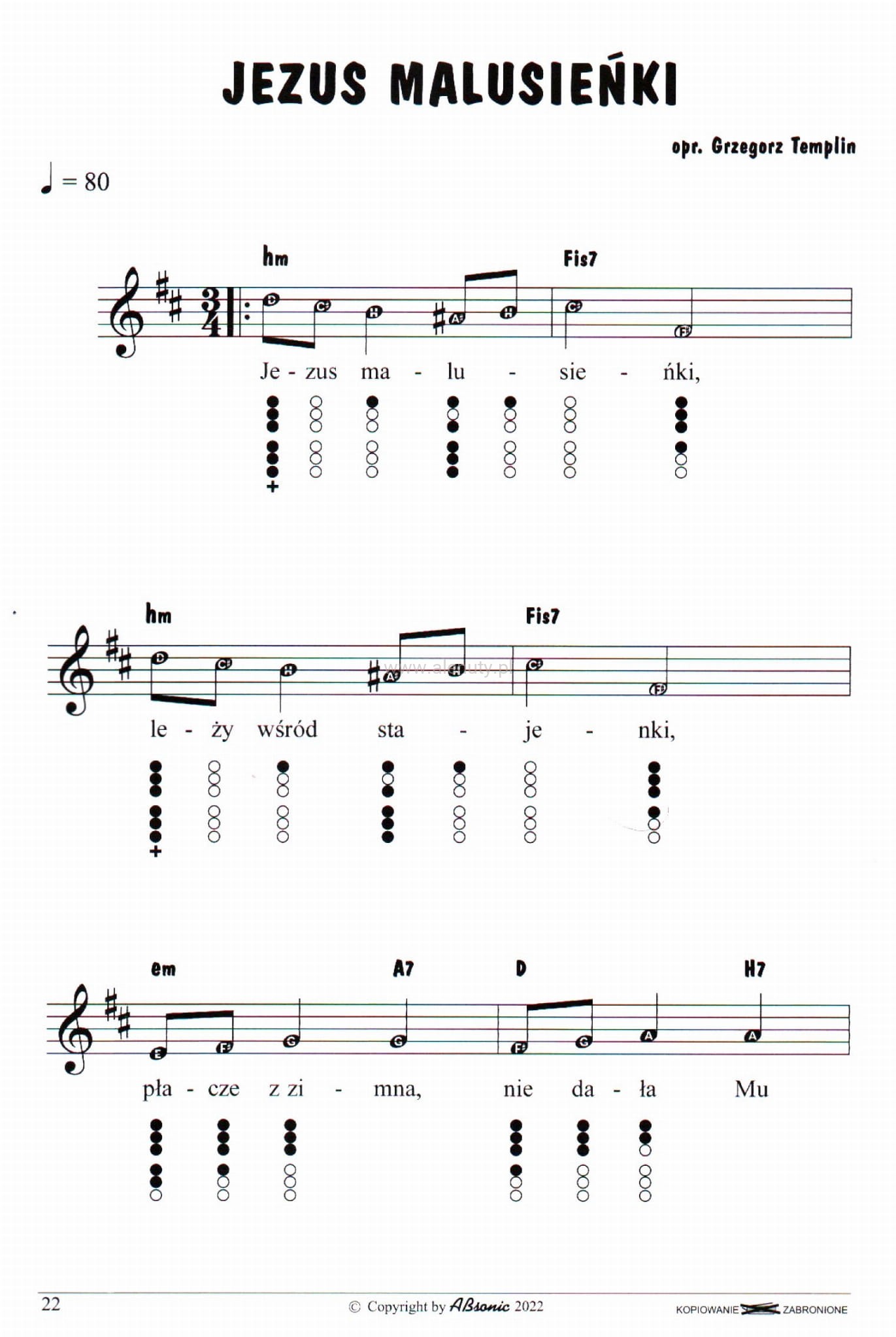 Najłatwiejsze kolędy na flażolet - Grzegorz Templin - nuty literowe i diagramy chwytów