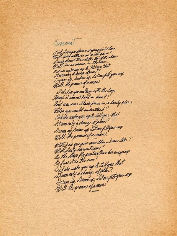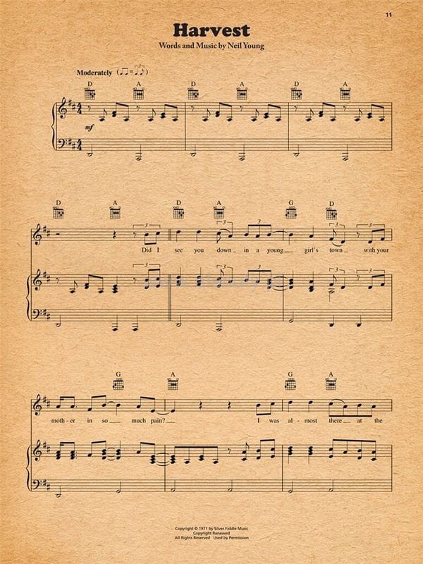 Publikacja zawiera zbiór piosenek z albumu Naila Younga "Harvest" wydanego w 1972 roku. Utwory opracowane zostały na fortepian, głos i gitarę.