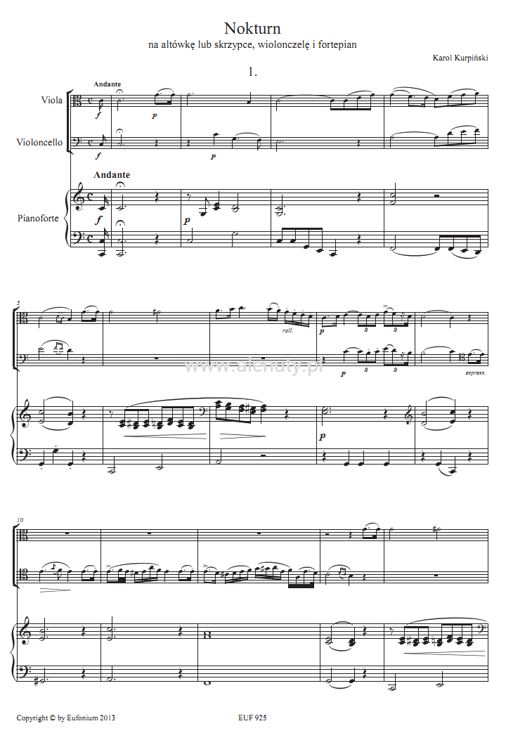 Tytuł: Nokturn na skrzypce lub altówkę, wiolonczelę i fortepian