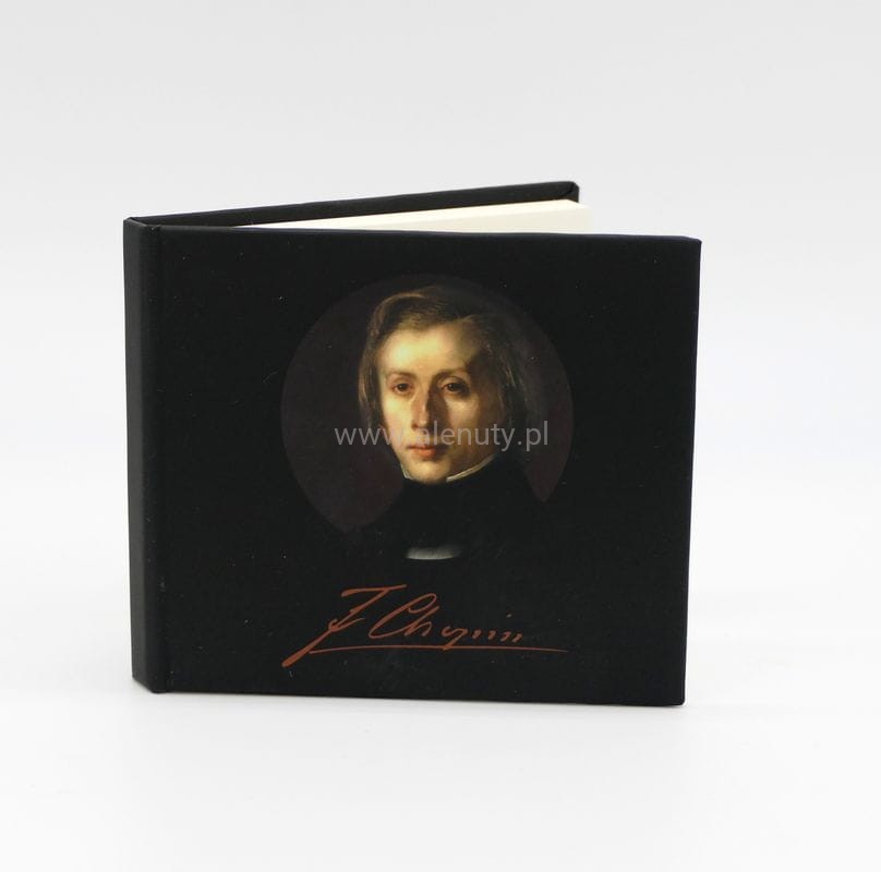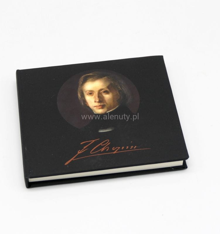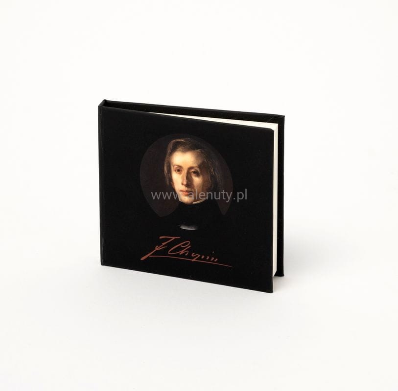 Notesik A7 z kolekcji Chopin portret inspirowanej portretem Fryderyka Chopina, wykonanym ok. 1843 roku przez jego przyjaciela - Teofila Kwiatkowskiego. Okładka jest aksamitnie miękka i przyjemna w dotyku. Będzie również doskonałym pomysłem na prezent dla miłośników kompozytora.