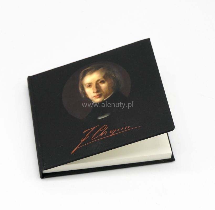 Notes A7 czarny gładki wizerunek i autograf Fryderyka Chopina