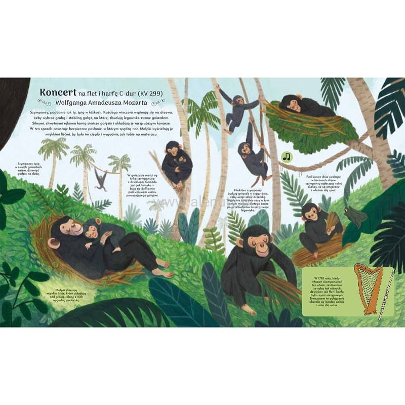 Seria Opowieści muzyczne od HarperKids to pierwsze na rynku polskim książki muzyczne w dużym formacie z miękkimi kartkami i ozdobną okładką, która wzbogaci każdą dziecięcą biblioteczkę. Na każdej rozkładówce znajdują się ikony nutek, ich naciśnięcie wyzwala muzykę - fragment utworu klasycznego.