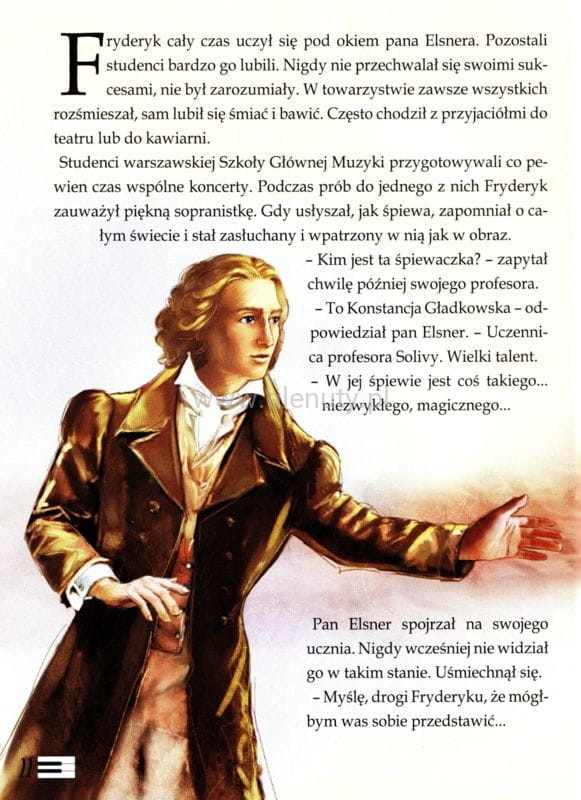 W dziewiętnastowieczny świat pomogą im przenieść się urzekające, kolorowe ilustracje. Doskonałym dopełnieniem spotkania z Fryderykiem Chopinem jest dołączony do książki kod QR, który umożliwia odsłuchanie najbardziej znanych utworów polskiego kompozytora w mistrzowskich wykonaniach.