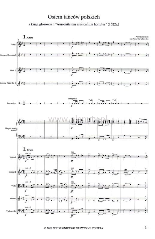 Osiem tańców polskich na 2 flety, perkusję, fortepian i zespół smyczkowy - nuty na zespół instrumentalny