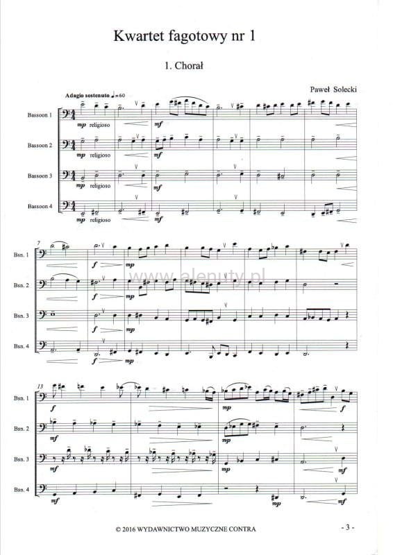 Paweł Solecki: Kwartet fagotowy nr 1 - nuty na cztery fagoty