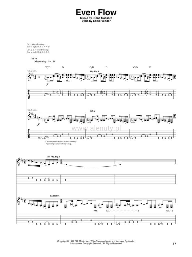 Pearl Jam: Ten - nuty i tabulatury na gitarę elektryczną, akordy gitarowe, słowa piosenek (Guitar Recorded Version)