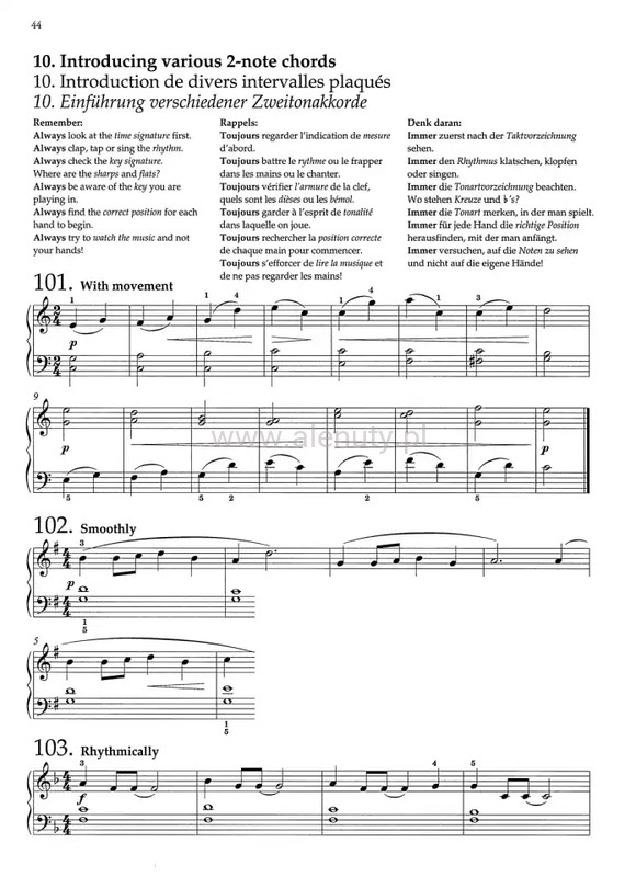 This volume builds on the progress achieved by following the outlines and good practice established in Book 1. This book helps to establish the habit of regular sight-reading, generally recognized as a vital skill in all fields of music. To this end, the exercises are progressive and structured to increase the pupil's awareness of new rhythms, keys and range of notes. Changes of hand position are introduced gradually, as is the recognition of and familiarity with chord shapes in both 2- and 3-note groups. - A progressive approach based on self-learning - 150 graduated exercises - Both hands treated equally for melody and chord playing - Hands together used throughout