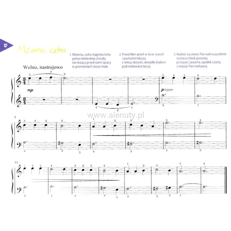 Publikacja obejmuje 15 najpiękniejszych polskich kolęd w łatwym opracowaniu na fortepian solo. To idealny zbiór dla dzieci, które właśnie zaczynają naukę gry na fortepianie. Kolędy są dostosowane do ich umiejętności, a wyraźne oznaczenia palców i większa czcionka nut sprawiają, że łatwo mogą przyswajać świąteczne melodie. Wiele z kolęd zawartych w zbiorze można zacząć grać już po kilku lekcjach. To doskonałe wsparcie dla nauczycieli muzyki i rodziców, którzy chcą, aby pierwsze kroki w nauce fortepianu były przyjemne i pozbawione stresu. To także znakomity materiał do pierwszych świątecznych koncertów lub muzykowania w gronie najbliższych. Każda kolęda ma swój własny, niepowtarzalny charakter, co sprawia, że dzieci nie tylko uczą się techniki gry na fortepianie, ale także odkrywają bogactwo różnych stylów muzycznych. Wydanie zdobią piękne kolorowe grafiki z motywami Świąt Bożego narodzenia.