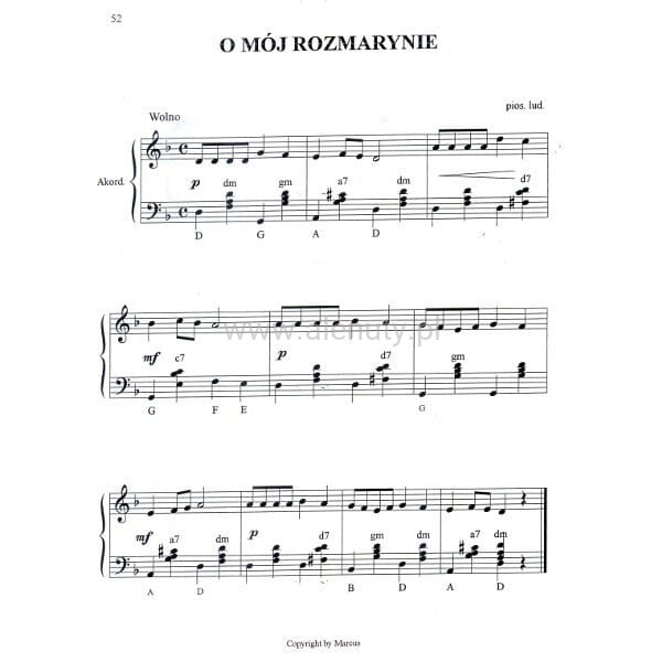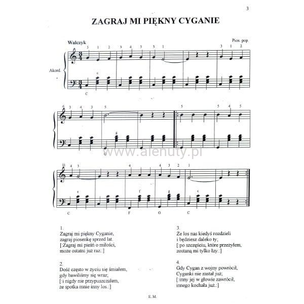 Piosenki biesiadne są jednymi z najpopularniejszych i najchętniej śpiewanych utworów. Wywodzą się z tradycji i kultury ludowej, często są to proste melodie, łatwo wpadające w ucho. W zbiorze, który oddajemy do Waszych rąk znajdziecie nuty na akordeon do 35 piosenek biesiadnych w prostym opracowaniu. Nuty opatrzone zostały palcowaniem co może pomóc w graniu poszczególnych piosenek. Poza zapisem nutowym zbiór zawiera również słowa do każdej piosenki, dlatego też jest doskonałym śpiewnikiem odpowiednim dla każdego - nie tylko akordeonisty.