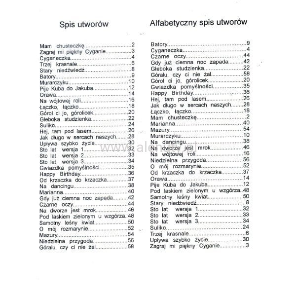 Piosenki na akordeon zawarte w tym opracowaniu są najczęściej śpiewanymi i granymi przez akordeonistów amatorów utworami. Te najbardziej znane biesiadne piosenki wykonywane są do dziś najczęściej przy akompaniamencie akordeonu. Dlatego śpiewnik, który oddajemy do Waszych rąk, jak również kolejne jego części, powinien być nieodłącznym elementem każdej biesiady. Muzyka bowiem łagodzi obyczaje i łączy ludzi. A biesiadne piosenki na akordeon na pewno w tym pomagają.