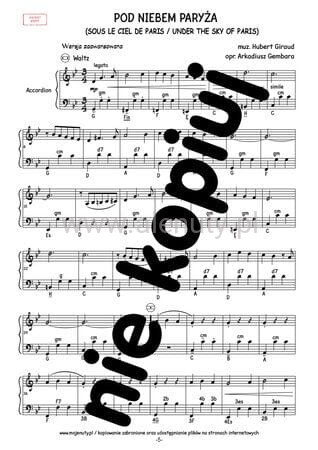 Publikacja zawiera utwór "Pod niebem Paryża" opracowany na akordeon solo. Jest to jeden z piękniejszych i najbardziej znanych walców francuskich. Opracowany został przez Arkadiusza Gembara w dwóch wersjach: dla początkujących i zaawansowanych.