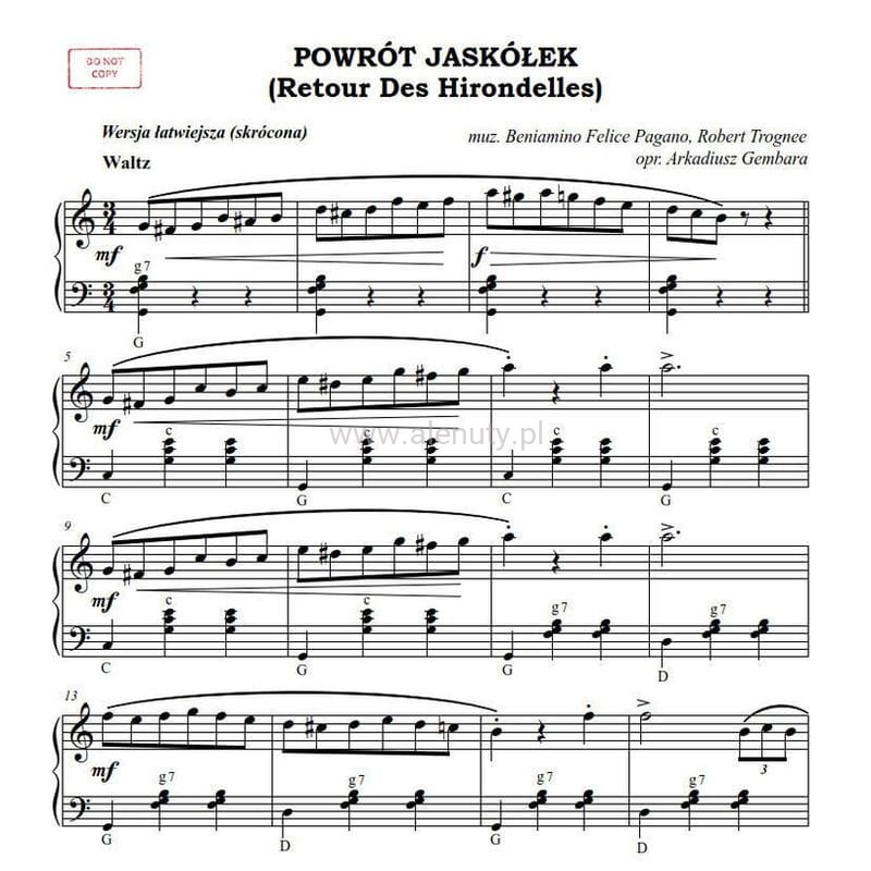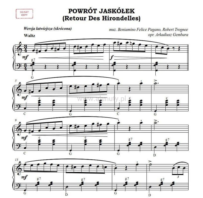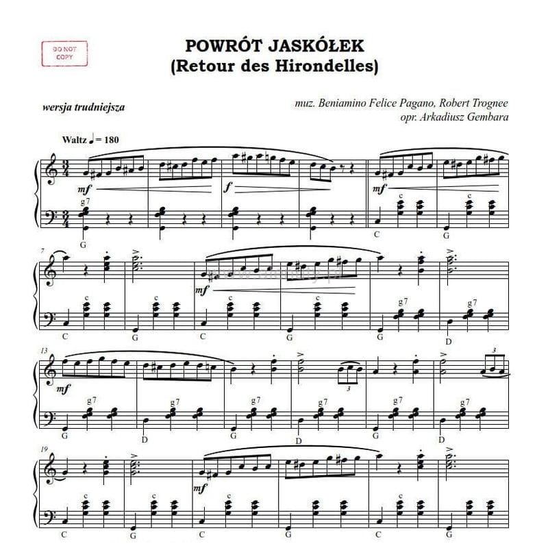 Powrót jaskółek - walc musette - Arkadiusz Gembara - nuty na akordeon solo