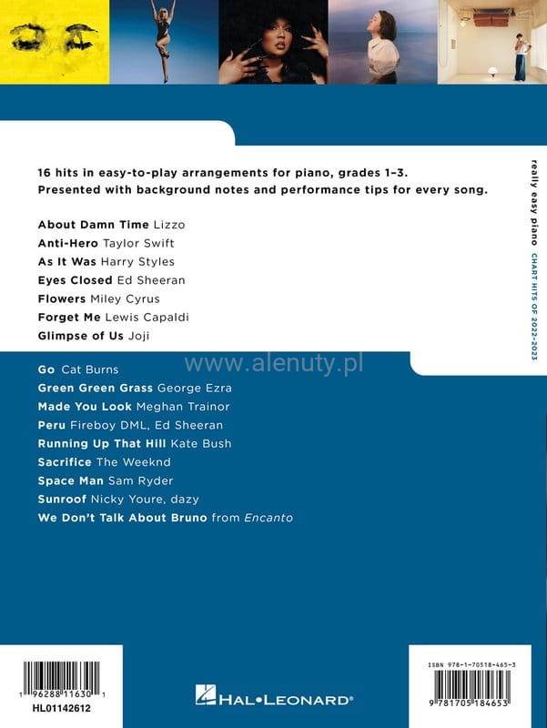 Publikacja zawiera 16 największych przebojów roku 2022-2023 w łatwej aranżacji na fortepian z oznaczeniami akordów oraz słowami. Znajdziesz tutaj między innymi nuty do Flowers, wykonywanego przez Miley Cyrus, Running Up That Hill (Kate Bush) i wiele wiele innych utworów z TikToka, kultowych seriali Netflixa i szczytów list przebojów na Spotify. Każda z piosenek ma krótki opis swojej historii oraz notkę wykonawczą - kilka cennych porad, które pomogą Ci w opanowaniu utworu. Nuty przeznaczone dla początkujących pianistów.