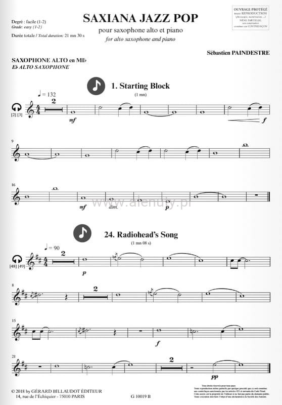 Saxiana Jazz Pop: 24 pieces pour saxophone alto et piano - Sebastien Paindestre (+ audio online) - nuty na saksofon altowy i fortepian