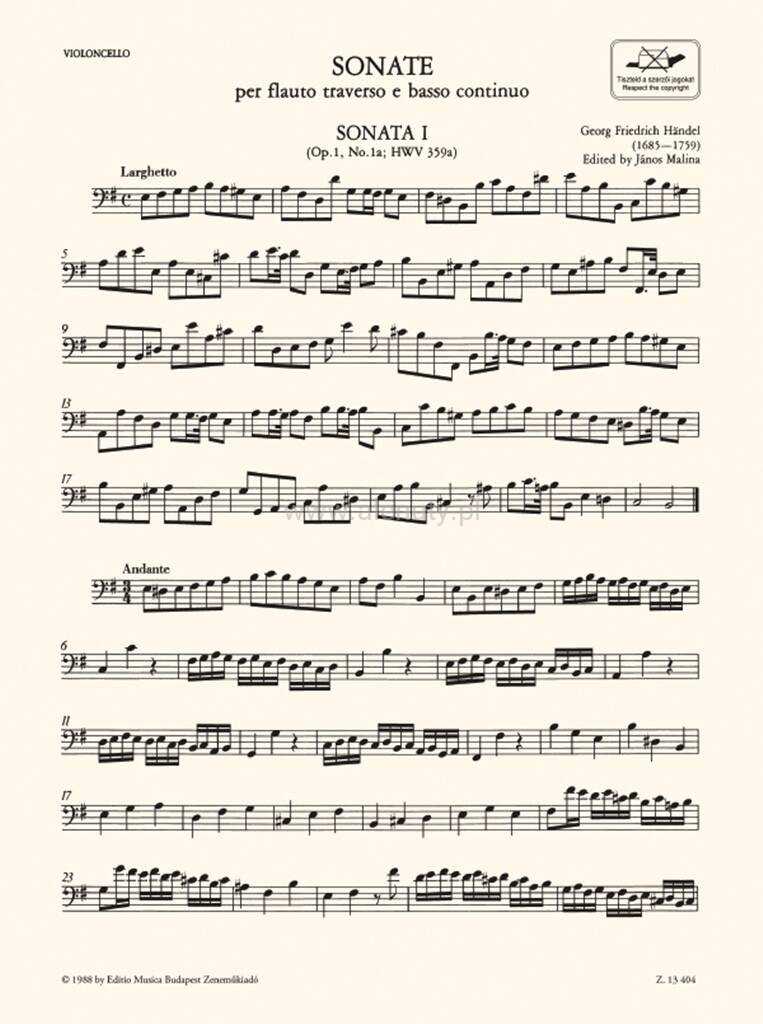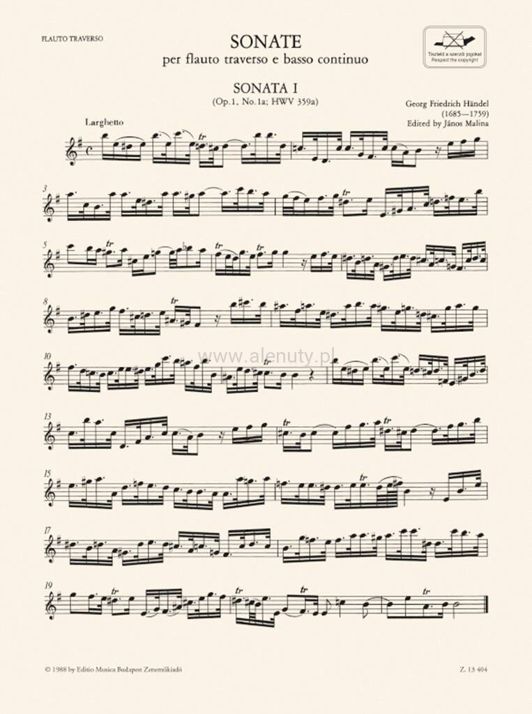 Sonate per flauto traverso e basso continuo - Georg Friedrich Handel - sonaty fletowe tom 1 - nuty na flet poprzeczny, wiolonczelę i fortepian