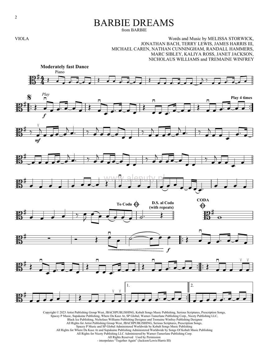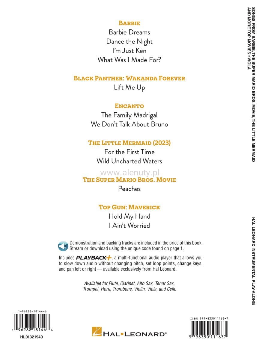 Songs from Barbie, Little Mermaid, Super Mario Bros and more Top Movies: Viola - 12 piosenek - nuty na altówkę (+ audio online)