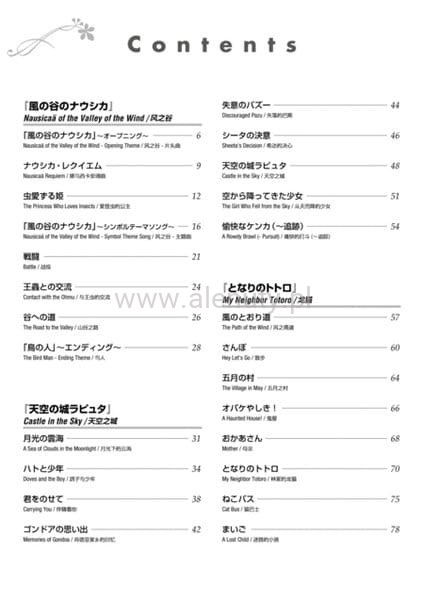 Publikacja zawiera bogatą kolekcję utworów Studia Ghibli w aranżacji Joe Hisaishi (japońskiego pianisty, kompozytora, aranżera i producenta .na fortepian solo. Wydanie obejmuje aż 77 kompozycji z japońskich kreskówek anime wraz z akordami. Nuty przeznaczone dla średnio-zaawansowanych.