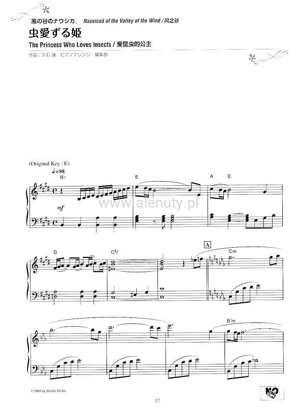 Studio Ghibli 77 Selections for Piano Solo - Joe Hisaishi - piosenki z japońskich kreskówek anime - nuty na fortepian