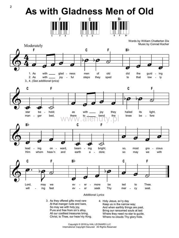 Publikacja zawiera znane kolędy i piosenki świąteczne w łatwej aranżacji na keyboard. Utwory o prostej melodii, zaprojektowane bez konieczności przewracania stron można zagrać za pomocą maksymalnie 3 akordów. Dodatkowo wydanie wzbogacone zostało o nuty literowe, które w główkach nut zawierają literowe nazwy dźwięków by ułatwić początkującym szybką i efektywną grę. Książka zawiera również pomocne diagramy akordów na keyboard, zapis akordowy utworu oraz pełne teksty piosenek. Nuty przeznaczone dla początkujących muzyków.