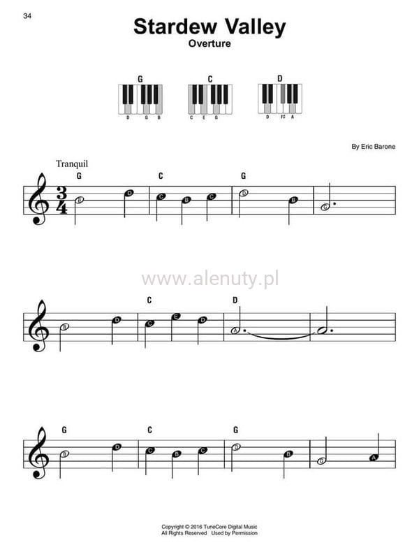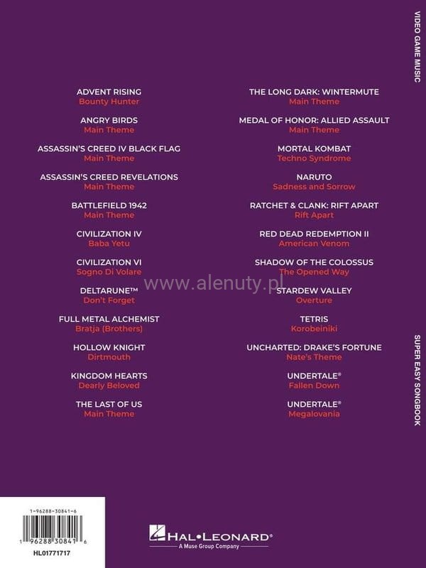 Wyrusz na muzyczną wyprawę z Video Game Music - Super Easy Songbook! Zawierająca 24 kultowe motywy z ukochanych gier, takich jak Angry Birds, Hollow Knight, Kingdom Hearts, The Last of Us, Stardew Valley i innych, ta kolekcja jest przeznaczona dla początkujących pianistów w każdym wieku. Dzięki prostym melodiom dla prawej ręki, nazwom liter w nutach i podstawowym diagramom akordów dla lewej ręki, granie ulubionych melodii z gier wideo nigdy nie było łatwiejsze!