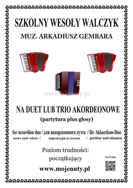 Szkolny wesoły walczyk - Arkadiusz Gembara - nuty na duet lub trio akordeonowe