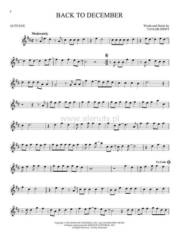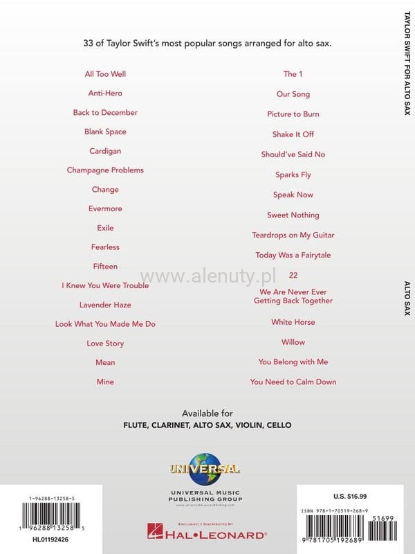 Taylor Swift for Alto Sax - 33 piosenek - nuty na saksofon altowy solo