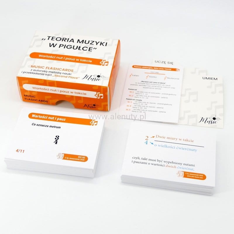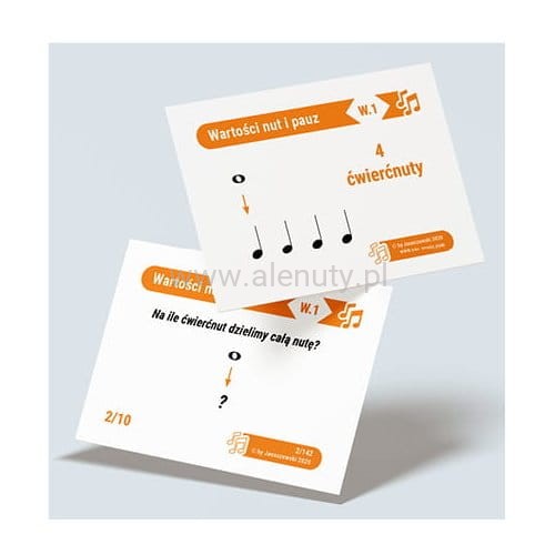 Teoria muzyki w pigułce: Wartości nut i pauz w takcie - muzykofiszki, karty do nauki, szkolna pomoc edukacyjna