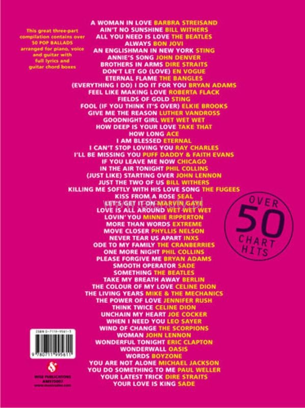 Publikacja zawiera ponad 50 popowych ballad w opracowaniu na fortepian, głos i gitarę, z tekstami i akordami. Wydania oznaczone jako PVG (Piano Vocal Guitar - Fortepian Melodia Gitara) zawierają zapis nutowy linii melodycznej, nuty na fortepian, akordy gitarowe oraz słowa do piosenek zamieszczonych w publikacji. Więcej o nutach PVG przeczytasz >>> w artykule