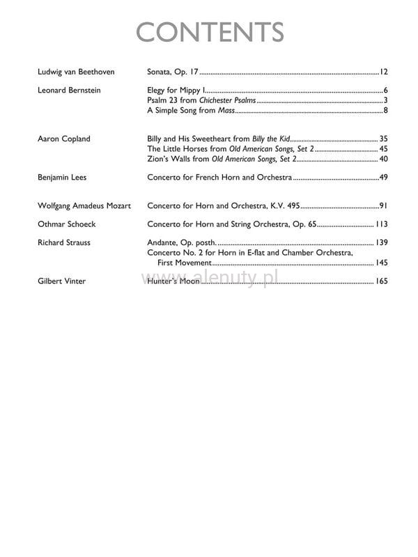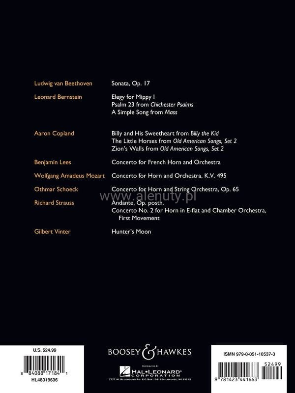 Publikacja zawiera zbiór 13 utworów autorstwa 8 najwybitniejszych kompozytorów Boosey & Hawkes. Nuty opracowane zostały na waltornię (róg) z akompaniamentem fortepianu. Książka obejmuje partyturę oraz głos instrumentalny. Wydanie przeznaczone dla średnio zaawansowanych muzyków.