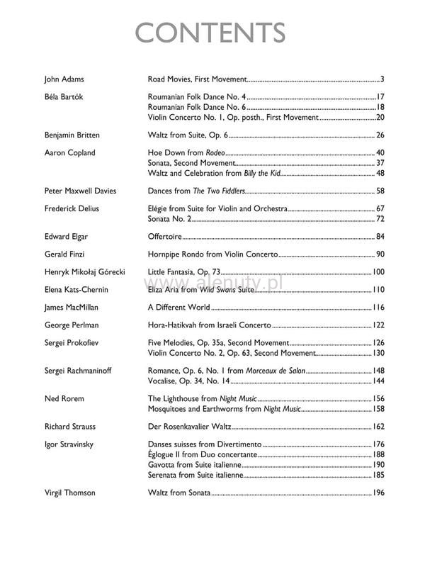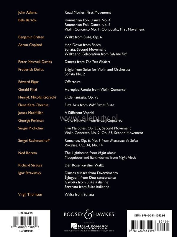 Publikacja zawiera zbiór 29 utworów autorstwa 18 najwybitniejszych kompozytorów Boosey & Hawkes. Wydanie obejmuje między innymi dzieła Johna Adamsa, Béli Bartóka, Benjamina Brittena, Aarona Coplanda, Siergieja Prokofiewa, Siergieja Rachmaninowa, Richarda Straussa, Igora Strawińskiego i innych. Nuty opracowane zostały na skrzypce z akompaniamentem fortepianu. Książka zawiera partyturę oraz głos instrumentalny.