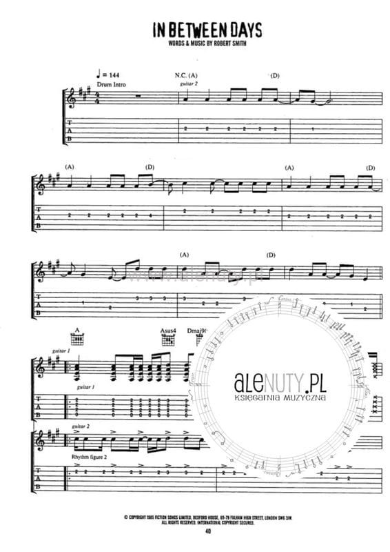 The Cure: Greatest Hits - nuty i tabulatury na gitarę elektryczną, akordy gitarowe, słowa piosenek (Guitar Recorded Version)