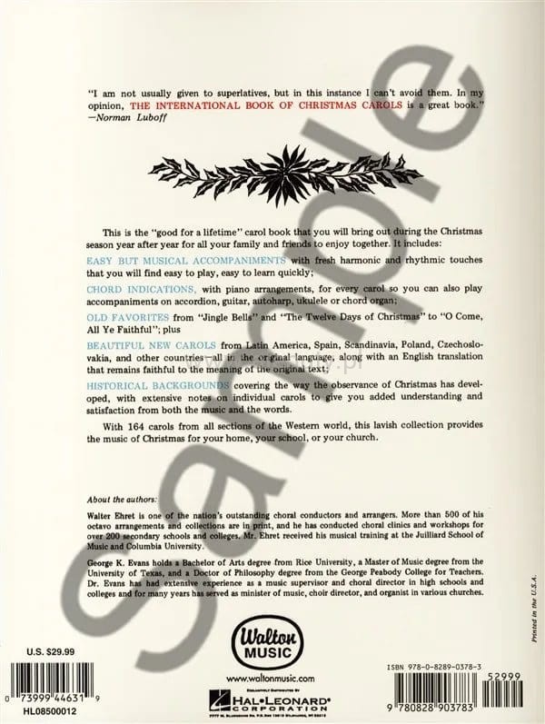 Publikacja zawiera 164 łatwe aranżacje kolęd z całego świata, wraz z tekstami w języku oryginalnym i angielskim oraz z akordami. Wydanie opracowane zostało na chór mieszany SATB. Ta specjalna kolekcja zawiera również informacje historyczne na temat obchodzenia Świąt Bożego Narodzenia na przestrzeni lat oraz notatki na temat konkretnych kolęd. Kolędy pochodzą z Anglii, Włoch, Ameryki Łacińskiej, Hiszpanii, Skandynawii, Polski, Czech i wielu innych krajów. Nuty przeznaczone zostały dla początkujących.